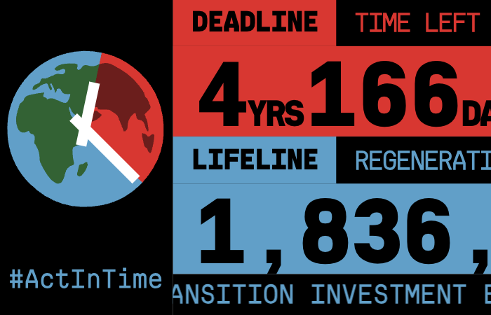 Make a bold statement by projecting a live feed of the Clock’s Deadline and Lifelines onto a main square or the HQ of a local Climate Criminal.